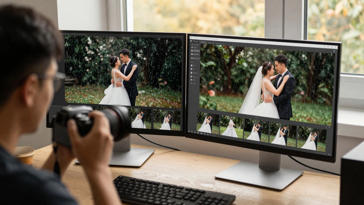 Then comes the editing. That’s where the real work starts. Color correction, skin retouching, background cleanup, lighting balance-each photo can take 2 to 10 minutes. A full wedding album with 800 edited images? That’s 27 to 133 hours of work. No one charges $2,000 to deliver 5,000 unedited files. They charge for the story they’ve crafted.